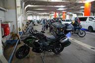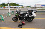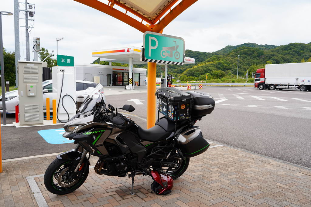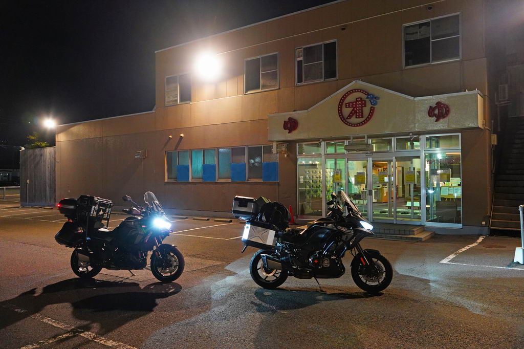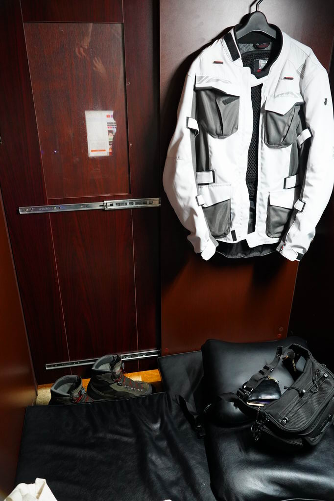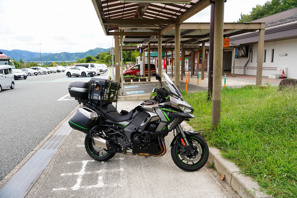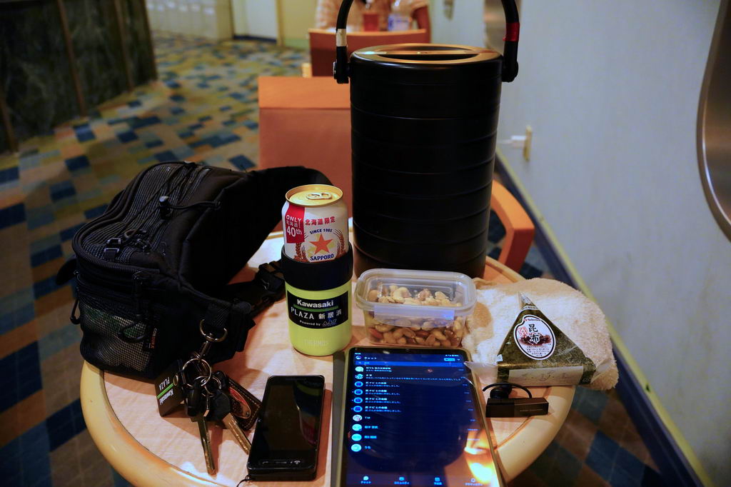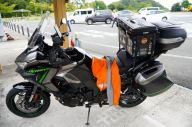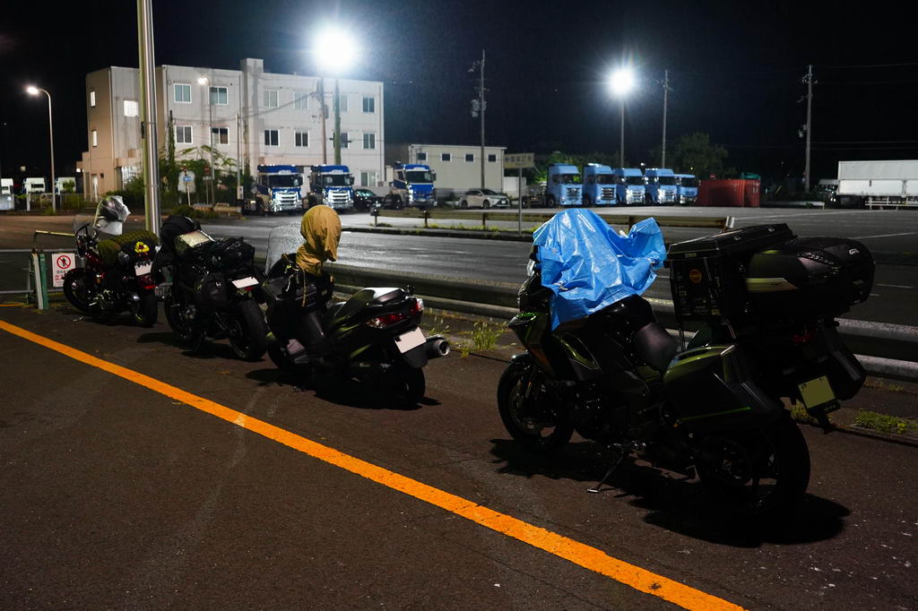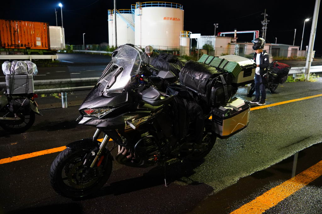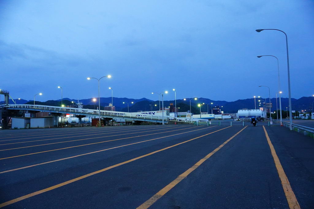 ここのところずっと暑い晴れた日が続いていた。出発の日も晴れて暑いと信じて油断していた。前日に天気予報を見ると雨マークがでているではないか。台風が発生し、四国に接近するので雨が降るのだ。しかも前日も翌日も晴れているのに出発の日だけ雨。細かい予報を確認すると、出発時にギリギリ降り出すかどうかの境目。行程全体ともに午前中はマシだけど昼からは雨っぽい。ということで、できるだけ出発を早くすることにする。だが、主夫業があるし、嫁の車が出ないとバイクを出しづらいので8時過ぎの出発が限界。できるだけすべてを前倒しにしてやっと8時半前に出発。雨が降ってないだけ準備も楽だったのでまだマシ。予定では橋以外は下道を走るつもりだったが高速で一気に舞鶴を目指す。さぬき三木ICから高速に入り津田SAにて雨雲レーダーを確認。残念だがこれから走る鳴門と淡路の南の方に雨雲がかかっている。とりあえずカッパの下を着ておく。上着はまだ着やすいが下は靴をぬがないといけないので大変なのだ。走り始めるとシールドに小さい雨粒がついてくる。路面はまだ乾燥していてカッパを着るほどでもない。用心のため鳴門西PAにてカッパの上着も装着。カッパライダーの完成である。ここからしばらく、路面が濡れるほどでもないが雨粒がシールドに来ていた。カッパを着てないとかなり濡れてしまうだろう。今はメッシュジャケットなので防水性が皆無で染み込んでしまうのだ。これが秋冬の防水ジャケットなら、そのまま突っ込んでもなんとかなったレベルだった。先を急ぎ室津PAまで走る。このあたりまで来ると雨も上がっている。予報だとこのへんも昼前から雨っぽかったが遅れているようだ。先を見ても15時くらいまでは雨はもちそうなので助かる。台風の接近だが風はそれほどでもない。注意しておかないと、鳴門や明石の橋が二輪通行止めになった場合、本州に渡れずゲームオーバーになってしまうので早めに渡っておきたかった。淡路のSAもパスして一気に北上。山陽道、中国道経由で走り、上荒川PAへと入った。天気は明るい曇りで暑くなってきた。曇っていると25度前後とカッパを着込んでもなんとかなる気温だったが、そろそろキツい。カッパの上着を収納して北上を続け、西紀SAへ入る。ちょうど12時前と昼飯時になったのでカツカレー980円を食べておく。前回来たときには気づかなかったが、手持ちのボトルに冷水を無料で供給してくれる装置が入口に置いてあった。淡路では通常のお茶&水サーバーに「ボトルに入れるな!」とあるのとえらい違いだ。持ってきていたボトルの水を飲み干し、ここで補給しておく。そのまま高速を走り、舞鶴東ICで降り、いつものセルフのガソリンスタンドで給油。続いてこれまた定番になった地元スーパーのフレッシュバザールに行き、船内で食べるパンやカップめんを仕入れておいた。そして舞鶴港へ。港へは14時前に到着。当然バイクも車も誰も並んでない。ターミナルビルは開いていてエアコンも効いていたが窓口は真っ暗で誰もおらず、2階の待合所も閉鎖中であった。とりあえず、荷物の整理を少しし、雨に濡れては困るヘルメットや買い込んだ食料を持ってターミナルに入り、イスに座ってメールを打ったりこの文章を打ったりしている。エアコンが効いて涼しくて助かる。15時にターミナルの電灯が灯り明るくなり2階の待合所も解放された。まだ雨は降っていない。バイクにはカウル部分にブルーシートをかけておいたが…役立つのかどうか微妙。16時半にターミナル受付が始まる。暇の極みで寝ていた。18時より売店が営業開始。夕食として十勝のホエー豚丼(1100円)を食べておく。19時に乗船位置への誘導が始まるが、レーンを1つ間違えていて移動させるハメになる。幸いにも雨はまだ降っておらず、直後に雨が少しであるが降り始めた。乗船時の雨は辛い…と思いながら待つ。22時までまだ雨は少し降っていたが、状況を見にバイクのところに行くと、ちょうどバイクが1台到着するところだった。ん~?パニアケースは社外品の角型だったが2020年型の黒のベルシス1000SEだった(驚)早速ライダーにコンタクト。彼も私がベルシスだというと驚いていた。レア車は同型に会うとうれしいものだ。彼は18時に広島を出て雨の中を走ってきたという。話していると前に停まっていたW800の爺さんが、実は私もベルシス250Xを持っているという。今日のバイクの乗船は20台くらいなのにベルシス仲間が3人集うとはレア中のレアだ。23時前に雨雲レーダーを確認すると雲の隙間が出て雨が止んでいて乗船時刻くらいまでは雨が降らないと出ている。外で確認するも雨が上がっていた。乗船時に着ようとカッパも持ち出していたが、急ぎバイクに収納。乗船準備をしておく。定刻どおり23時10分に乗船開始。毎度の右舷に誘導され無事乗船完了。プアーなツーリストAの部屋に行く。これまた毎度の端っこの部屋で独立性があり棚も2人分使えるというステ