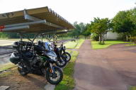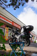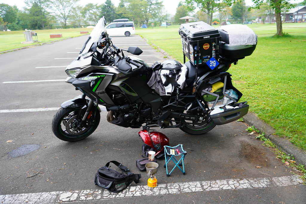 5時起床。朝の室温は20度で夜中は十分暖かかった。せっかく買ったダウンシュラフが役立ったかどうかは不明。服装は上がTシャツと長袖ヒートテック。下が若干厚手のジャージだ。昨日は一人だったので、濡れたものも乾かし、充電もしたし、ヘルメットのシールドも洗っておいた。準備をして6時過ぎに出発。客車に泊まったライダーも管理人さんも起きてこなかったので寂しい出発。天気は晴れている。気温は14度くらいと肌寒い。佐呂間市街の方から国道333号線に抜け走るが、霧が出てきた。フォグランプ点灯だ。美幌まで霧が濃くなったり薄くなったりだったが総じて日が当たらず肌寒かった。藻琴のセイコーマートにて朝食。プアーないつもの朝食だ。昨年まであった店頭の長いすはなくなっていて残念。晴れて直射日光が暑いので木の陰で持参のイスを出して食べる。次に清里いっぽんの道に行く。Google マップに出ていたところだ。一直線の道が海に続く感じなのだが、ちょっと曇って景色的にビミョーだった。清里あたりは一直線の道が多数あって、もはや珍しい感じがしないのが残念も(贅沢な話だが)。近くに来運神社があるので20年ぶりくらいに行ってみる。記憶が飛んでいたが駐車場にはトイレもあり東屋もあって車中泊すらできそうな場所だ(熊が怖いのでしないが…)湧水があってステンレスの流しで水が流れているのは変わってない感じだ。来運の水を使って雑巾でVersysを少し拭いておいた。これできっとVersysにも運が来るだろう(本当か?)。斜里の町に出て、ホームセンターのDCM NICOTに行く。初日からどうもUSB充電の調子が悪い。ケーブルに自由に曲がる継ぎ手がついているのだが、そこがどうも接触不良みたいで頻繁に瞬停している上にどうもアンペア数が低い感じなのだ。気休めで小さい556スプレー(簡易的な接点復活剤)を買って、わずかに継ぎ手に塗り、継ぎ手を動かし油を良くふき取ってから通電したが、気休めが効いてとりあえず使えるようになった。続いて知床へ向かい、ウトロの道の駅に寄ってみた…がバイクはほとんど居なかった。さすがに平日になると地元ライダーが減って一般旅人のみになるので少ない。一般観光客も思ったよりは少ない感じだ。続いて知床横断道路を走り知床峠へ。途中でフェリーで一緒だったVersysとすれ違った…と思ったが、パニアケースが角型ヘプコ&ベッガーまで合っているが色が黒かったような気がした。彼のは銀色だったはず。じゃ、別人か?(そんなにVersys多いか?)と思いながら峠の駐車場に入ると、そこにフェリーで合ったVersysの彼が居た(驚)彼も再会を喜んでくれて、しばし話し込む。彼は今日は霧多布から来たという。そしてウトロへ抜けて釧路まで走るという(驚)元気だね〜。まだまだ話足りないが時間も足りないので記念撮影をして分かれる。後から来た熊本のZ250ライダーが、そんな我々を見ていたので、彼が出ていった後に話しかけると、大型バイクがうらやましくて見ていたらしい。まだ、大型免許取れないんですよ…という。ん???まさか16歳か17歳?と聞くと17歳であった(驚)バイクに乗る若者が少ない中、貴重な人材だ。土曜の夜に我々を見ていた高校生も大型バイクにあこがれていたようだが、我々の乗るVersysもあこがれの対象の大型バイクに映ったってことと思って良い…んだよね。ここでVersysの燃料ポンプから異音が。最初はエンジンのシリンダーが削れているのか?というシャラシャラという音なのだが、エンジン始動前でも音が鳴る。キーONにして、しばらくして鳴って、エンジンをかけないとすぐに止まるので燃料ポンプの異音だろう。しばらくして消えたが気持ちが悪い。知床峠を下って行くが、羅臼岳も国後島も見える青空の絶好の天候の元で良い道を走るのはとても気持ちが良い。思わず途中から戻ってもう一度走ってしまった。GTRでも絶好の好天の元、GoPro撮影で走ったが、直進性が強くてコーナーの切り返しが重かったがVersysは本当に軽く自然に曲がれるので特に気持ちが良い。羅臼に降りてセイコーマートにて昼食。ちょっと遅くなったので夕食に影響が出てもいけないので軽くパンと牛乳だけにしておく。ここでも店頭にてイスを出して食べる。今頃になって眠くなってきたので中標津のセイコーマートでアイスコーヒーを飲む。暑なったので長袖ヒートテックも収納し中は半袖Tシャツで走るがとても爽快だ。今日は別海町のキャンプ場なのだが時間があったので奥行臼駅跡に寄ってみた。何でも後方支援部隊の彼が行ったときにはホームが崩れかけていたという話だった。崩れかけたところは立ち入り禁止になっていて残念な風景になっていた。当時の駅舎とホームが残る数少ないところなのに…残念なことだ。キャンプ場で停まった時、隣のライダーが「今日は温泉が定休日だよ…」と一言。マジか…温泉があることを期待していただけにガッカリ。とりあえず受付。ライダー優遇のライダーサイト(一般1100円ライダー700円)が