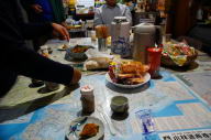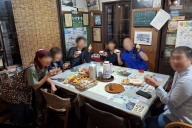 朝の分も溶けてなくて完璧だった。風呂に入り、風呂上がりにいきなりビールで一杯。すでに悪のり老人常連客になっている。そして、宿主と会話しながらこのレポートを打っている。今日の宿泊は車で来る夫婦と車の1人だ。車の1人は来るのが遅れるみたいで宿主もやきもきしている(今日はラジオの日なので)。なんとか7時前に到着。無事7時20分に名寄のえんれいホールに行って地元FM局のラジオ出演。すでに3回目だし酒も入って緊張なしになって多少いいかげんになっている気がする。無事放送が終わり、10時前に宿に戻り駅呑み会開始。コレがとても楽しく12時過ぎまでやっていた。手みやげの酒や甘いもの、私のプリン、地元のカボチャなど、食べながら会話に花が咲いた。おかげで掲示板にUPができなかったが…。