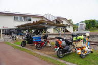 朝5時半起床。外は11度くらいと冷えている。天気予報は晴れだが霧が出ていてビミョーな感じだ。昨日洗濯したものはきれいに乾いていたので収納袋に入れておく。飯は7時からだが、少し早めに準備はできていた。昨日の彼は朝食なしで出るというので私一人の食事だ。食前食後にインスタントではあるがコーヒーもいただいておく。出る前に、コンテナボックス用の氷を少し分けていただいた。8時に出発。今日の予定は、道の駅もち米の里なよろで買い物をしたいので開店の9時より早く着いても無駄なので割とのんびりの出発だ。服装は長袖ヒートテック1枚だったが少し寒かった。道の駅には9時前に到着。開店と同時に入って、名物なよろプリンをゲット。以前は名寄駅前のブラジルというお店で売っていた品だがお店が閉店して途絶えていたのが復活したのだ。が、数量が少なく表記はお一人様4個とあった。聞くと何個でもOKというので、本日の宿の呑み会用に7個買っておく。このために朝、氷をもらって来たのだ。コンテナボックスに氷と共に入れておけば夕方まで冷えた状態なのだ。ビール以外にも役立つ保冷コンテナボックスだ。まだ霧が晴れず寒かったので薄手のダウンを着込んでおく。次のネタが名寄の名物ラーメン屋なので時間がまだある。名寄市内が見下ろせるみずほパーキングの展望台に行ってみる。道は走りやすく気持ちよかったし、高度が上がると晴れて気持ちよいを通り越して暑いくらいになる。展望台からの眺めは…市内は霧の中であった。展望台から市内に引き返し北国博物館の隣に鎮座しているキマロキ(蒸気機関車と除雪車の組み合わせで展示)編成を見に行く。神戸のNC750ライダーさんも来ていたのでお話しする。彼はなんと私より10歳年上の74歳であった。一緒にキマロキを見ているうちに、晴れて青空が広がってきた。11時になったのでラーメン屋の「一善や」に行ってみたが…私の記憶違いで11時半からだった。開店と同時に入って、いつもラジオで聞いている「じいちゃん味噌」を注文した。が、これが間違いで、辛いバージョンは「じいちゃん味噌の激辛」を注文しないといけなかった。普通の味噌が来て普通に旨かったが、今度は激辛を頼もうと思ったのであった。次の目標は美深町文化会館COM100で開かれている美幸線(廃線から40周年)の展示を見に行く。無料の展示なのだが、当時の物は少なくパネル展示中心であった。しかも文字中心なので老眼には厳しくほとんど読めない。ということで早々にパスして次のトロッコ王国に行く。ここが12時13時14時と1時間おきの出発なので遅れると1時間近く待つことになる。Google先生の予想到着予定時間が12時51分なので気合いを入れて走る。予測通り12時50分着。手続きをしてトイレも済ますと乗車説明がすでに始まっておりギリギリだった。料金は単独で乗る場合は2000円、2人以上で乗る場合は1800円だ。私を含めて今回は4組で単独で乗るのは私だけだった。私は最後の出発だったが、最後なので、先に行ったトロッコを先行させ少し離してぶっ飛ばしで走ったり、ちょっと止まって写真を撮っても後ろから突っつかれることもなく安心なのだ。天気がよく、青空を見ながら木々の中をのんびり走れていい感じ。乗るのは4回目なのだが、最後に乗ったのは2013年の家族旅行以来だから12年ぶりになる。乗り心地はサスが無いのでそれはそれでひどいものだが、それが苦にならないほど楽しい。往復10kmで約40分のイベントは自分で運転することもありとても楽しめる。すぐ来た道を戻ると少し早すぎる。現在14時なので松山湿原の方向でサンルダム経由で帰るとちょうど良さそうである。道が悪いかと思ったが、全く逆で道幅は広いし道路の凸凹もほとんど無くて快走路だった。ダム湖である「しもかわ珊瑠湖」では沈んだ立木の見える湖面がキレイだった。よく見ると沈んだ道路がうっすら見えていた。もっと水位が下がるとさらに良く見えるようだ。快調に走り下川町経由で名寄へ。給油してから今夜の宿の天塩弥生駅に入る。15時半だが、宿主たちと知らない仲でもないのでチェックイン時間はあるようで無い。前回は1月2日に予約をしていたが、宿主の健康状況が悪くキャンセルになってしまった。が、宗谷岬からの帰りの途中で寄ってお会いしているので8ヶ月ぶりだ。今日のお土産のなよろプリンを渡しておく。氷も昼過ぎにコンビニで買って追加しておいたが