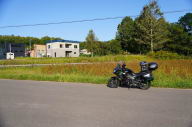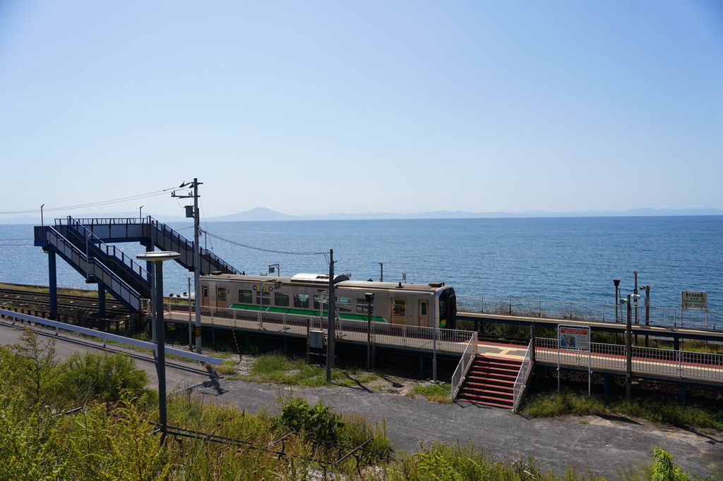 いよいよ道内最終日。4時起きで出発準備をする。4時はまだ真っ暗だが、外は霧が出てガスっているのがわかる。気温はそれほど低くなく14度前後というところだろう。昨夜テントを張るときに木の下を選んだが、去年同様にほぼ夜露がしのげてテントのフライシートは濡れていなかった。が、内部からの結露で裏側が湿っている。バイクは半分木の下から出ていたので前半分が夜露でかなり濡れていた。雨が降らず、風もあまり無いときは木の下が有効だと思う(虫が落ちてくるという話しもあるし、雨の時はまとまって水滴が落ちてくるとか、雨が上がってもしばらく雨が落ちてくることがあるので要注意かも。)早めに起きたので準備をほぼ終えた段階で昨日買っておいたカップ麺を作って食べる。熱いラーメンが心地よい。このキャンプ場はゴミが捨てられるのでありがたい。空き缶OKなのにペットボトルはダメというのは不思議なところ。聞いてみたが、小学校が空き缶は回収してくれるけどペットボトルはダメなので受け入れてないという。7時に出発。国道237号を南下する。霧がかっているので速度が上げられない。朝は鹿の飛び出しもあるので要注意だ。黄色い補助灯をつけて走る。海岸沿いの国道235号に出る頃には霧も晴れて気温も上がってきた。朝早くコンビニに入ると、都会から遠いところは補給物資が届いてなくておにぎりやパンが空っぽということがよくある。気のせいか、8時前後くらいのトラック到着という感じで、到着しても棚に並べるのにタイムラグがあるので、朝食の時間に間に合ってないという気がする。苫小牧のコンビニに8時15分頃に入ったが、まだ棚に並べてなくてショボい選択となった。食後、暑くなってきたので着込んでいた薄手のダウンは収納。このあたりの海岸沿いはある意味北海道らしくなく、小さな集落が続いて交通量が多く、自然が開けている感じもないので走るのがビミョー。特に、苫小牧や室蘭付近は走りづらい。今日の午前中は室蘭から伊達紋別あたりまでの駅訪問だ。毎度のことながらGoogle先生に導かれ、駅を撮影して回る。北舟岡駅は海岸に極めて近く、上からの展望も効き天気も良いので予想以上の展望に驚く。気のせいか見える海の向こう側全方向に陸地が見える。なんだか大きな湖にも見えるが…気のせいだ。お昼になったので伊達紋別のすき家にて昼食。2日間米が少なかったので牛丼がありがたい。駅訪問を終えて、国道453号で北上開始。いつもは洞爺湖の西側の国道230号を使うことが多く、東側を使っての北上は珍しい。2023年のハンターカブの時に行ったのが記憶に残る最初で、そのほかの時期には行ったかもしれないが記憶の彼方にぶっ飛んでいる。こちら側は旧国鉄の胆振線の跡なのだが、ほとんど自分が通らなかったこともあり廃線跡巡りにも来たことがない。残存する遺構はほとんど無いみたいだ。が、国道沿いを走っていたところもあり路盤跡の雰囲気が国道から見ることができる。暑くなってきたので雨に降られ雨宿りした2023年に休憩したベンチのあるセイコーマートにてアイスコーヒーを飲み、長袖ヒートテックも収納してインナーはTシャツ1枚となる。続いて駅のホームが残っているという蟠渓(ばんけい)駅に寄ってみたが、工事の基地になっており立ち入りできなかった。ホームは開発する道にかかってはいないようだが一部崩されているという。続いて寒別駅跡に行く。国道から少しだけ入ったところの民家の裏手の空き地にホームが残存していた。駅跡もなく、それらしい道や近隣の施設もなく、Google先生がいなかったらまず発見できない場所だった。羊蹄山を見ながら走るが、天気はサイコーで道もよく気持ちよく走れる。途中、毎度のポイントで撮影。室蘭付近の混雑と違って道もよく交通量も少ないし本当に気持ちよいツーリングだ。おそらく札幌付近の地元ライダーだと思われる荷物の少ないバイクは何台かみかけた。やはりここは走るのには良いところなのだろう。外国人で混雑してそうな倶知安をパスして国道393号に入り、道の駅あかいがわでトイレ休憩。さらに国道393号を北上し小樽へと向かう。この時期は17時なるともう暗くなってしまう。毎度の、毛無山の展望台から小樽市内を展望。小樽へと下って、帰りの食材を買うマックスバリュに行き買い物をする。船内よりお安いビールを買い無料の氷をもらって真空保冷コンテナに入れておく。次も毎度の行動パターンだが、ガソリンを給油してからすき家で夕食。最後の晩餐なので卵1個追加の大奮発だ(泣)。最後にOSPAのあるセイコーマートに寄って買い物。OSPAはちゃんと営業していた。次利用することがあれば下調べは外さないようにしておきたい。フェリーターミナルには18時過ぎに到着。まだライダーも5台くらいだ。20時の乗船位置への移動まで時間がある。データのバックアップや掲示板へのupをターミナルの待合室のイスとテーブルで済ませておく。エアコンが効い